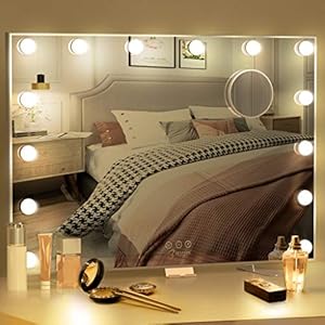 Vanity Mirror with Lights Hollywood Mirror Large Lighted Vanity Mirror with 3 Color Lights,USB A and USB C Outlet with…