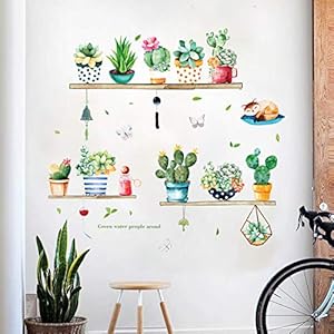 Poorminer Cartoon Cactus Wall Sticker Potted Green Plants Wall Decal Removable DIY Mural Art Decoration for Living Room…
