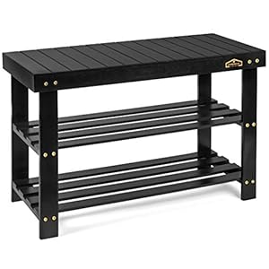 Homemaid Living Bamboo 3 Tier Shoe Rack Bench, Premium Shoe Organizer or Entryway Bench, Perfect for Shoe Cubby, Entry…