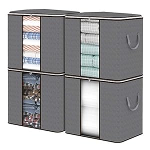 Fixwal 4 Pack Tall Extra Large Foldable Closet Organizers, Clothes Storage Bags with Reinforced Handle Clear Window and…