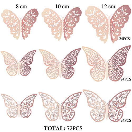 3D hollow-out butterfly wall decals: the package contains 3 sizes of 3D butterfly wall stickers in 3 different styles, totally 72 pieces stickers; These stickers are suitable for serving as wall decoration or DIY home decor