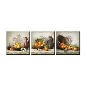 Kitchen Canvas Wall Art Vintage Fruits Flowers Artwork – 12″ x 12″ x 3 Panels Retro Fruits Canvas Painting Modern Pictures Canvas Print Framed for Dining Room Home Wall Decor