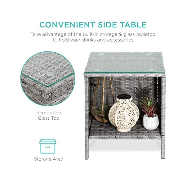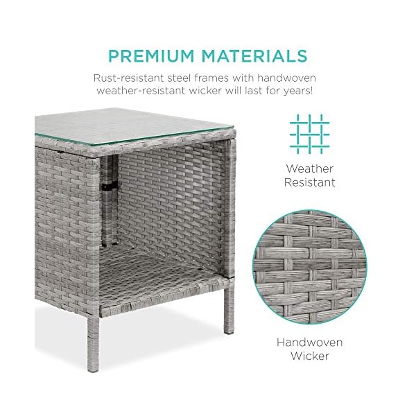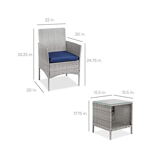PREMIUM MATERIALS: All-weather wicker on a rust-resistant steel frame guarantees long-lasting, high-quality seating; CHAIR DIMENSIONS: 21.5″(L) x 19.5″(W) x 33.5″(H); TABLE DIMENSIONS: 15.75″(L) x 15.75″(W) x 17.7″(H); Chair Weight Capacity: 250 lbs.; Table Weight Capacity: 50 lbs.