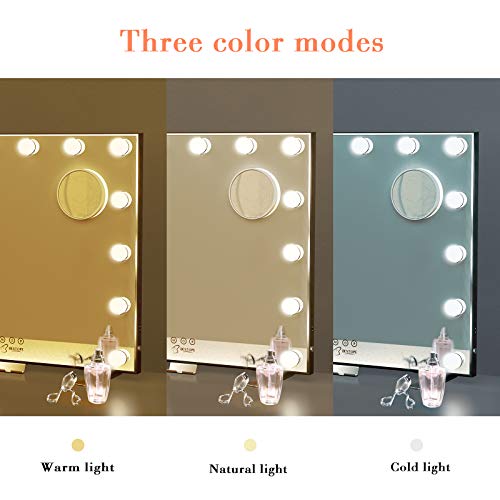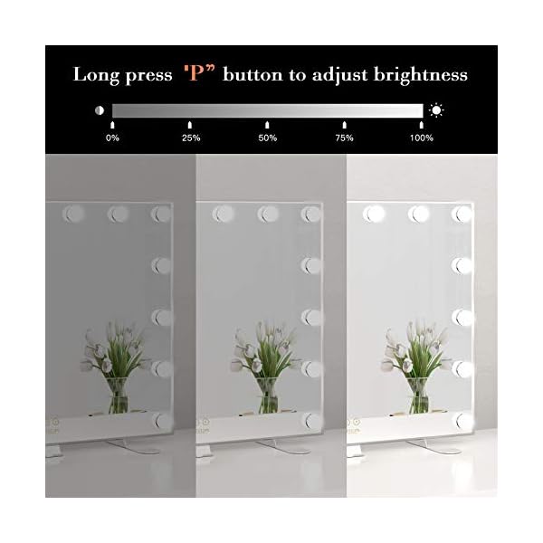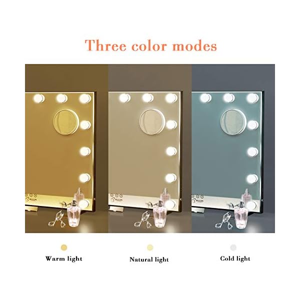 3 Color Lights&Ajustable Brightness:The lighted vanity mirror with 3 adjustable color lighting modes(warm light/natural light/cold light), adjustable brightness ensures your makeup looks flawless, you can check your makeup under different lighting conditions.