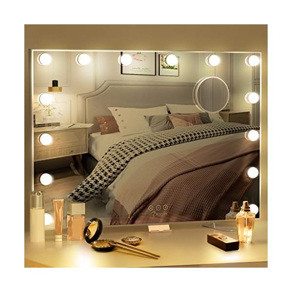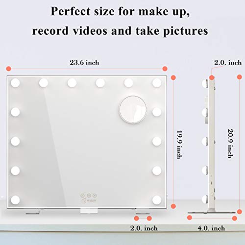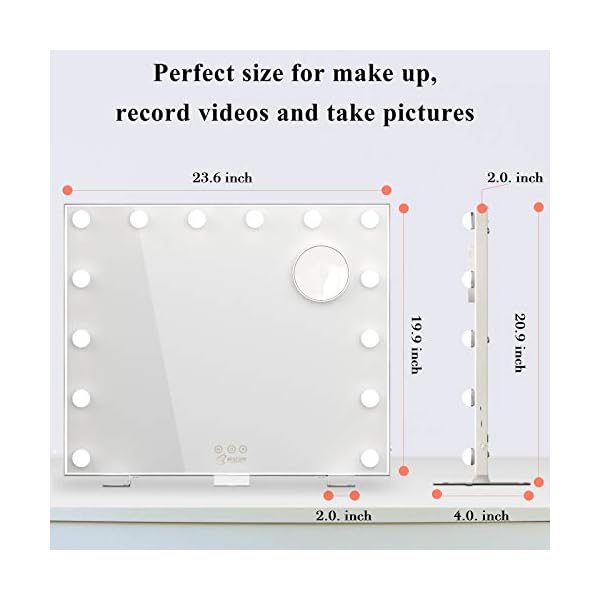 Large Vanity Mirror:BESTOPE Newest vanity mirror has a perfect large size(23.6″x 19.9″), It’s large enough for makeup, instagram lives and take pictures , suitable for dresser and bedroom.Detachable 10X magnification spot mirror for your eye makeup,meet all your needs.