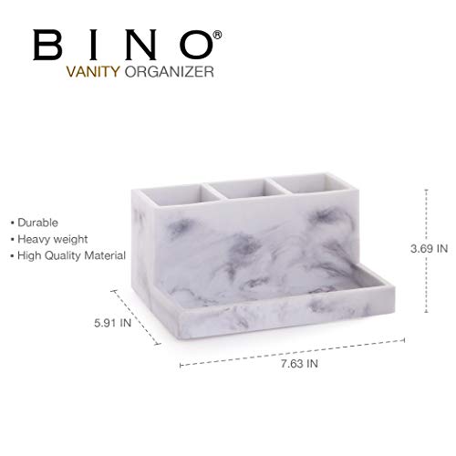 BINO Multi Purpose 3 Compartment Organizer with Tray – Makeup Brush Holder Makeup Brush Organizer Holder Makeup Holder Organizer Toothbrush Holder Marble Bathroom Accessories