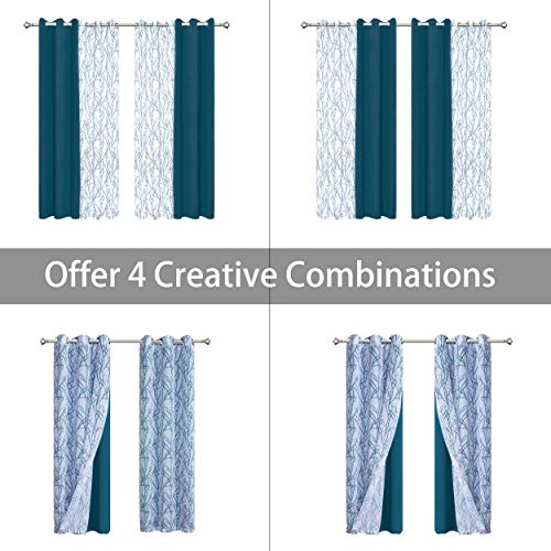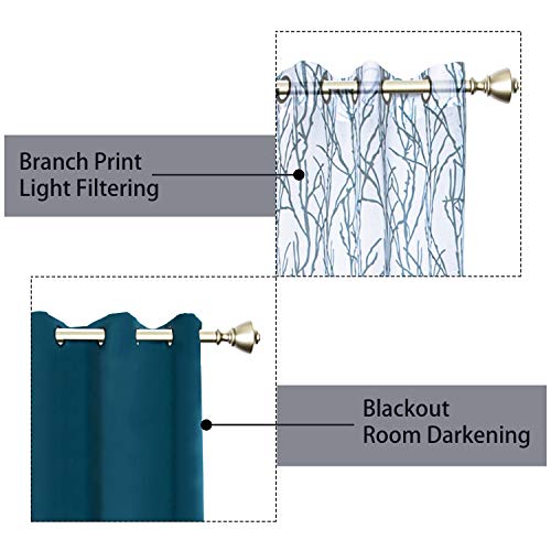WHAT’S IN THE PACKAGE?: Each set includes 2 pieces branch print sheer curtain and 2 pieces blackout curtains. Each curtain panel measures 37 wide by 84 inch long and finished with 6 grommets with 1.6 inch diameter that fits well with standard curtain rods, making them easy to install and move along the pole.