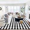 KOZYFLY Buffalo Plaid Rug 8′ x 10′ Buffalo Check Rug Cotton Black and White Washable Retro Lattice Checkered Outdoor Rug…