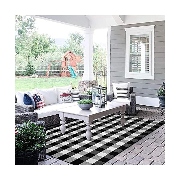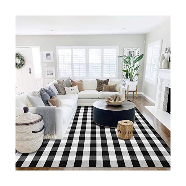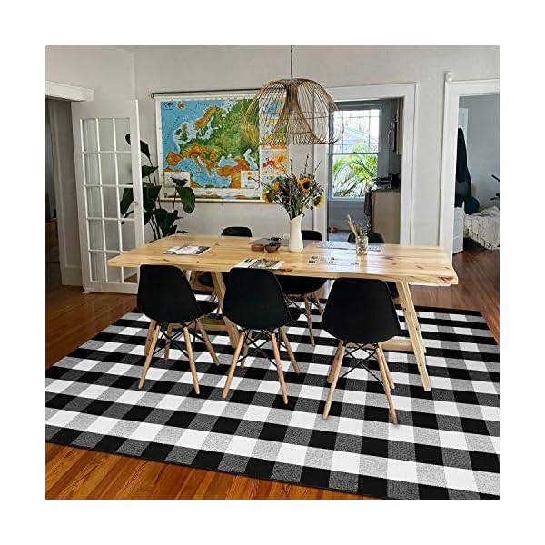 KOZYFLY Buffalo Plaid Rug 8′ x 10′ Buffalo Check Rug Cotton Black and White Washable Retro Lattice Checkered Outdoor Rug…