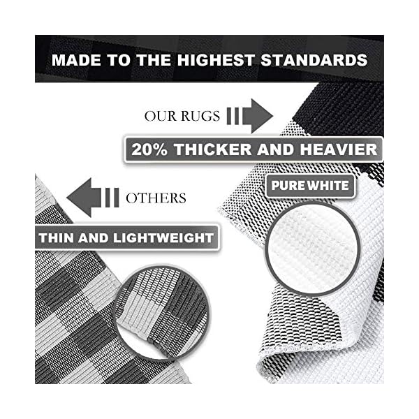 【 COTTON MATERIA】- Cotton hand-woven Buffalo plaid rugs with classic black, grey, white check pattern, environmental protection fabric. Please allow half inch deviation due to manual measurement!