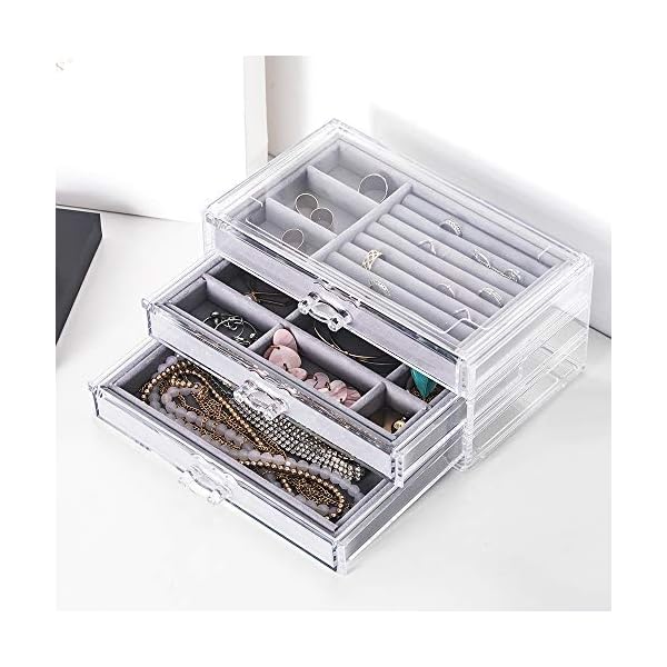 Colour:Gray,Szie:9.25×5.5×2.7 Inch,Velvet jewelry box with 3 drawers: Fully lined interior to make it stylish look and provide your jewelry better protection.