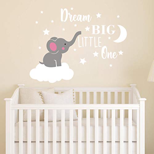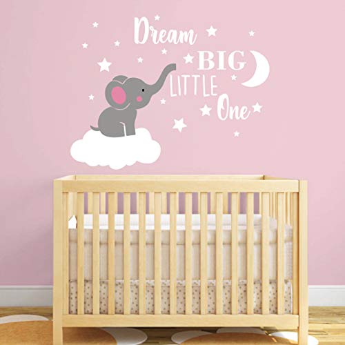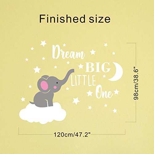 Incoude: 1 elephant(55cmX43cm), 1 cloud(55cmX27cm), DREAM BIG LITTLE ONE(60cmX48cm), 30 stars size from 3.6cm-9cm