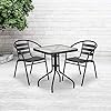Whether adding some much needed real estate to hold drinks and snacks on the patio at home or a place for patrons to relax, have a meal and great conversation, this tempered glass and metal table can help create the perfect relaxing or entertainment environment. The ripple designed table top features a smooth surface for keeping items level. Enjoy dining outdoors year-round on this bistro patio table designed for all-weather use making it a great option for indoor and outdoor settings. For longevity, care should be taken to protect from long periods of wet weather. The powder coat finish lends the square-shaped table a bold, versatile appearance that matches well with your favorite chairs. This glass table will enhance the look of your bistro, cafe, restaurant, hotel or home patio space.