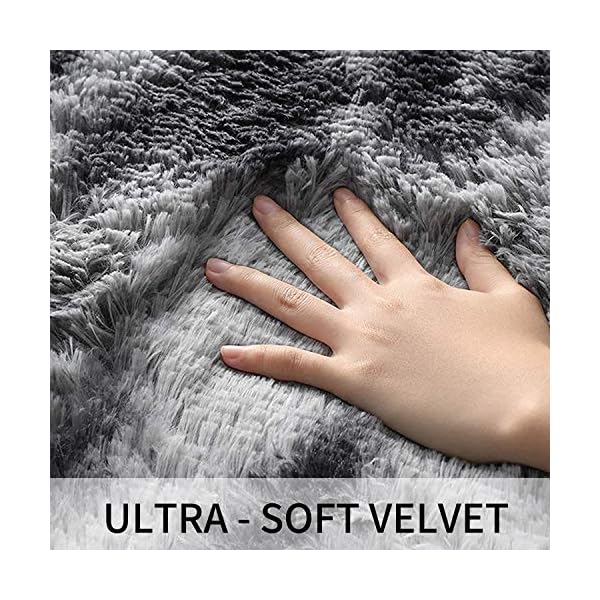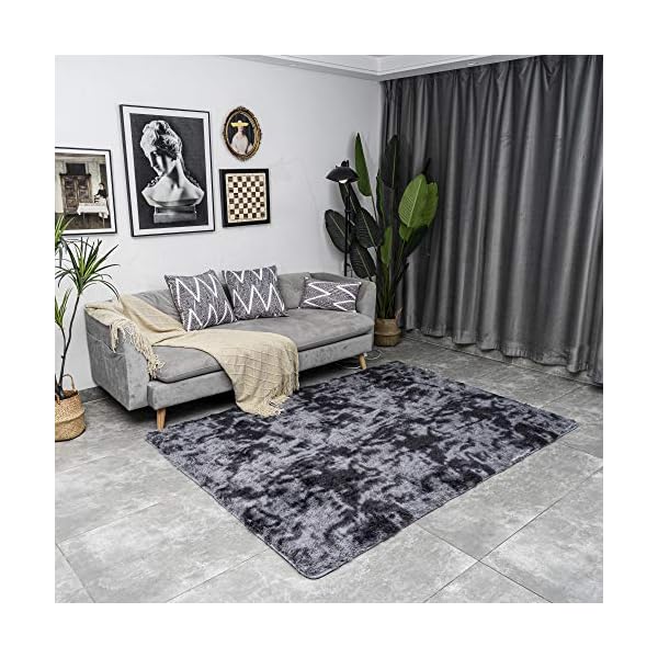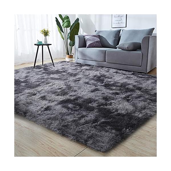 GKLUCKIN Shag Ultra Soft Area Rug, Non-Skid Fluffy 4’X6′ Tie-Dyed Grey&Blue Plush Indoor Fuzzy Faux Fur Rugs for Living…