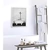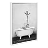 Scrub-a-dub-dub! This giraffe is ready for the tub! This whimsical, farmhouse-style bathroom art. Framed in the USA in Waunakee, Wisconsin, this floating canvas art will be a pleasure to look at every day in your living room, bedroom, nursery, or any room in the home. Printed on gallery-wrapped canvas and framed with a lightweight polystyrene frame, this wall art has two hangers already attached to the MDF back for easy wall display. The outer dimensions are 24 inches tall by 18 inches wide by 1.63 inches deep. Print Name: “Giraffe 2 in the Tub”