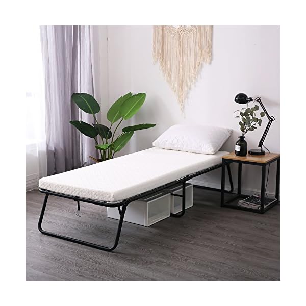 LEISUIT Rollaway Guest Bed Cot Fold Out Bed – Portable Folding Bed Frame with Thick Memory Foam Mattress for Spare…