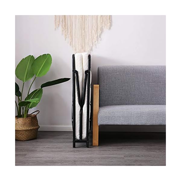 Ideal Fold Out Bed:Robust all metal frame folds in half for storage purpose with the folded dimension 37″x31″x6.7″