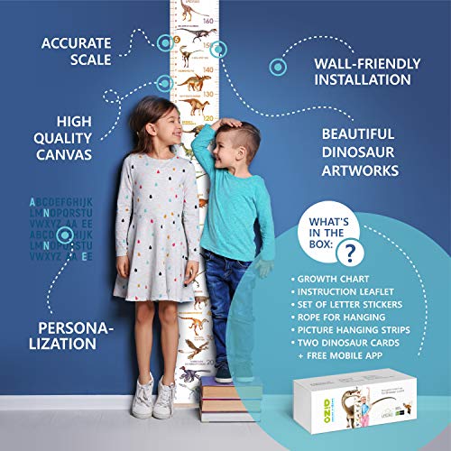 LIFELIKO Personalised Growth Chart for Dinosaur Lovers, Removable Wall Ruler for Boys and Girls, Kid’s Room Decoration…
