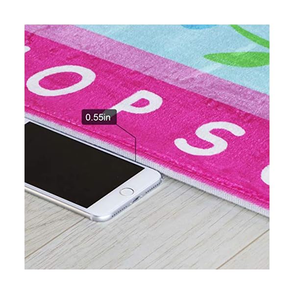 Durable and Strong: The extremely durable backing of the LIVEBOX area rug was designed for long-lasting use. Tiny, durable dots on the underside of the kids rug provide a strong grip, helping to keep it in place on your floors. Make sure floors are dry underneath the nursery rug to prevent the kid rug from slipping.