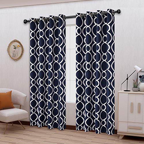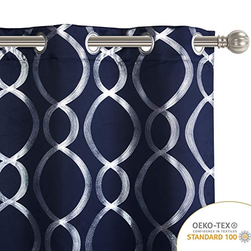 LORDTEX blackout window curtains are made of durable 100% polyester fabric and foil print geometric patterns make panels more elegant. Blocking out most of sunlight can provide you entire privacy and reducing outside noise can create a quiet environment for sleeper. Besides, room darkening curtains can balance room temperature to improve energy efficiency. The window curtains are widely used for bedroom, living room, kitchen and so on.