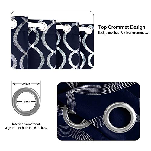 WHAT’S IN THE PACKAGE?: Each set includes 2 navy blackout curtain panels. Each curtain panel measures 52 wide by 84 inch long and finished with 8 grommets with 1.6 inch diameter that fits well with standard curtain rods, making them easy to install and move along the pole.