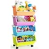 MAGDESIGNER Toys Storage Organizer Bins Baskets with Wheels for Kid Can Move Everywhere Large 4 Baskets Natural/Primary…