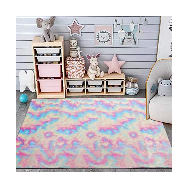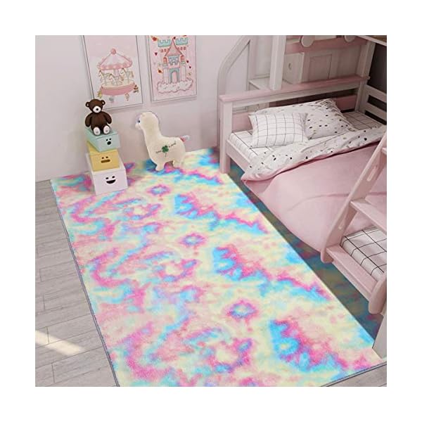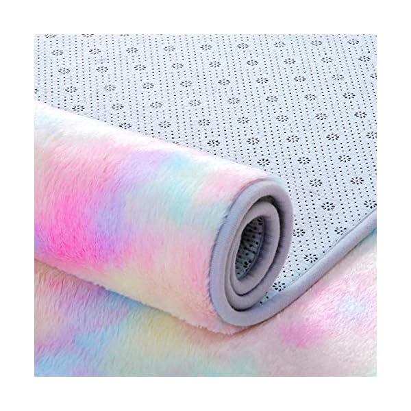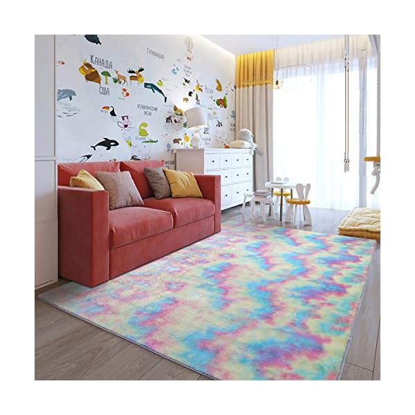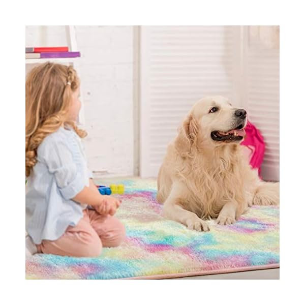 Maxsoft Furry Kids Rainbow Rugs, Colorful Area Rug for Girls Bedroom, Nursery, Play Room, Fuzzy Carpet for Living Room…