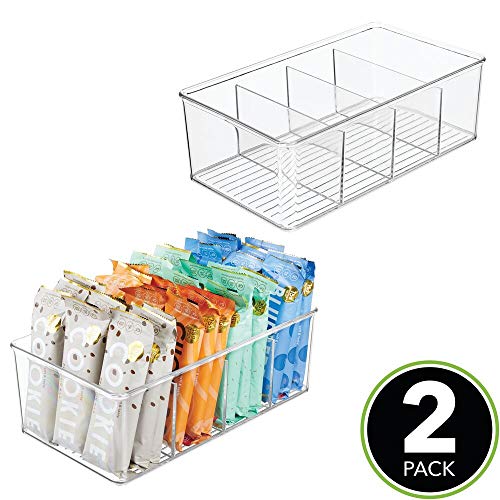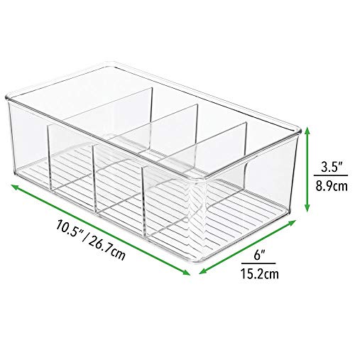 mDesign Plastic Divided Bin Storage Containers – Perfect for Fridge, Cabinet, Pantry, and Home Organization – Clear…