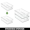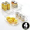 STORAGE MADE SIMPLE: These large capacity bins are great for creating a clean and organized refrigerator or pantry; Ideal for yogurts, canned goods, food packets, cheese, meat, drink boxes, baby food, juices, boxed foods, potatoes, onions, and apples; Great for storing dry goods in the pantry; Stack these or use side by side to create the storage solution that works best for you; Maximize storage space in refrigerator, freezer, cabinets, cupboards, pantry shelves or inside drawers; Set of 4