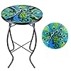 MUMTOP Outdoor Side Tables Patio Table 14’’ Round Mosaic Accent Table Peacock Glass Plant Stand Decor for Garden…