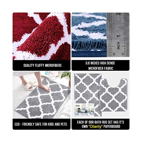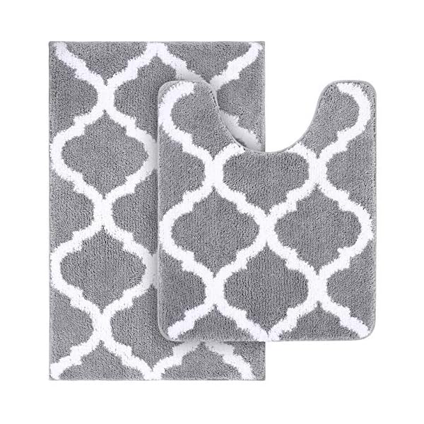 OLANLY Bathroom Rugs Set 2 Piece Microfiber Bath Shower Mat and U-Shaped Toilet Rug, Machine Wash Dry, Non Slip…