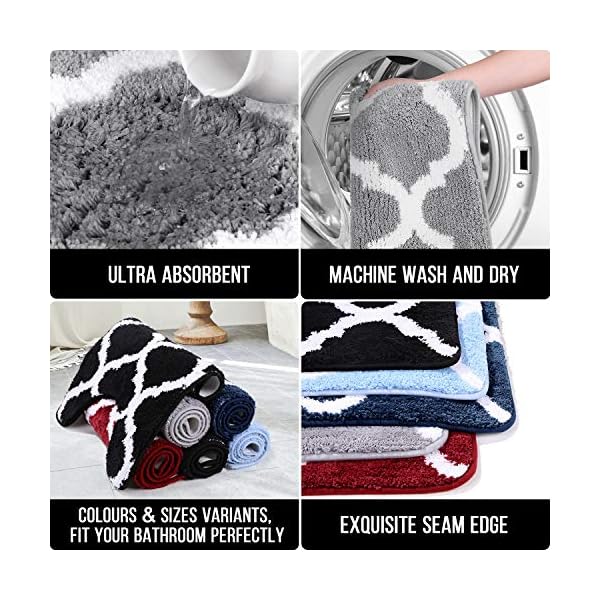 COMFORTABLE & LUXURIOUS: Contemporary geometric moroccan design, 0.6 inches height fluffy and soft microfiber fibers, unique fiber-locking technique, thicker and better constructed than most other brands. Great for bathroom, vanity, vacation home, master bathroom, kids bathroom, guest suite. Great gift idea for all occasions, Christmas, Wedding, Fathers Day, Mothers Day, Valentines.