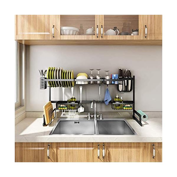 Tsmine Dish Drying Rack Over Sink Adjustable, 2 Tier Stainless Steel Kitchen Dish Rack,Large Dish Rack Drainer for…