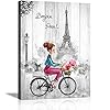 Paris Canvas Wall Art Black and White Wall Art for Bedroom Bathroom Pink and Gray Paris Theme for Teen Girl Room Decor…