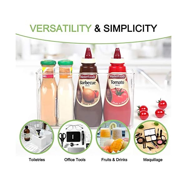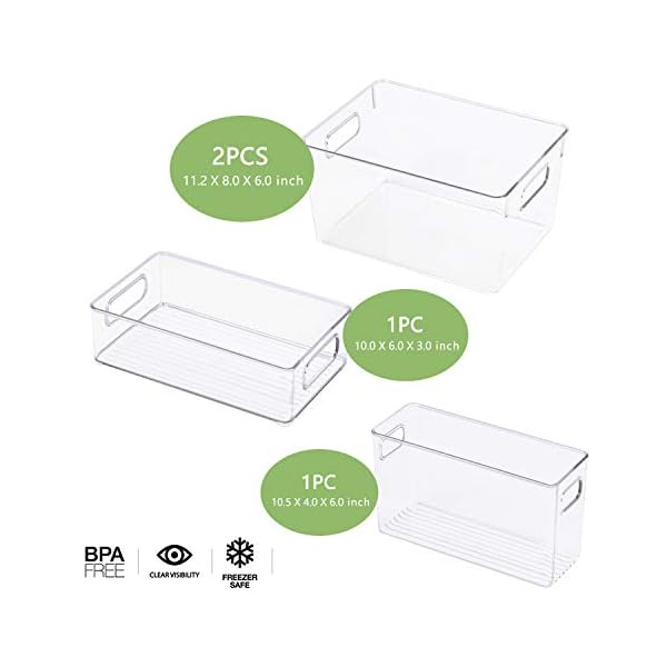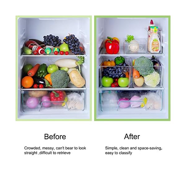 ✅ UPGRADE YOUR FRIDGE ORGANIZER SPACE: Messy display will waste too much space. Use the refrigerator storage bins to reasonably classify your food, save refrigerator space and organize more food. The clear plastic makes it easy to see where the food is placed and saving you the time to find food.