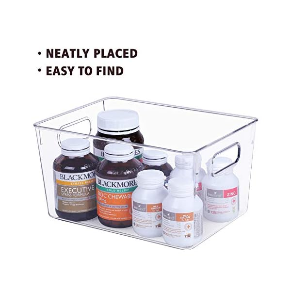 ✅ HIGH QUALITY AND FOOD-SAFE: Made of durable high quality shatter proof BPA free chlorine free plastic. Easy to clean! Wash with mild soapy water. Do not place in dishwasher!The small organizer bin measures 10.5″ x 4″ x 6″, the medium organizer bin measures 10″ x 6″ x 3″, the large organizer bin measures 11.2″ x 8″ x 6″.