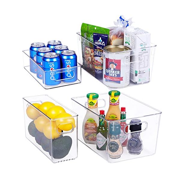 Plastic Refrigerator Organizer Bins – 4 Piece Clear Fridge Organizers with Handles, Fridge Organization Bin Set, Clear…