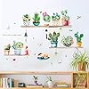 Poorminer Cartoon Cactus Wall Sticker Potted Green Plants Wall Decal Removable DIY Mural Art Decoration for Living Room…