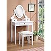 Set includes vanity table, mirror and stool, 3 storage drawers