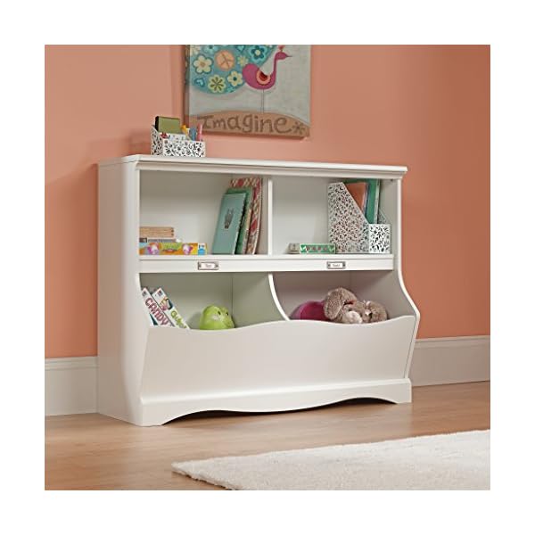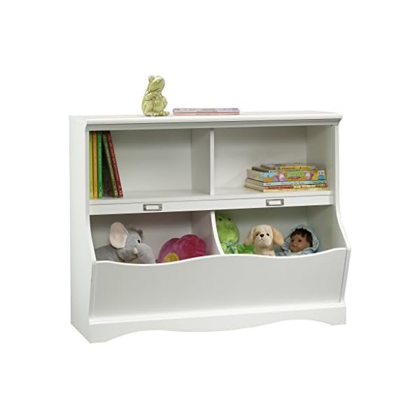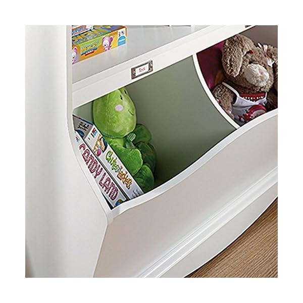 Give your child’s room a cute and fun way to keep organized with this bookcase/footboard from the Pogo collection. Store stuffed animals, books, blankets and more in the cubbyhole storage or the storage bins. Each storage bin features an ID tag for even more organization. Finished in a sleek Soft White, this charming bookcase is like a dream come true.