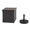 Instantly add shade to any outdoor setting with this combination umbrella stand side table by Sunjoy, the world’s leading ready-to-assemble outdoor structure maker. Perfect next to outdoor lounge chairs or seating areas. This versatile table constructed of all-weather wicker and rust-resistant powder-coated steel combines beauty and function. Relax under the shade away from the sun’s glare and harmful UV rays and enjoy a side table perfect for setting down a cool drink. The included umbrella stand fits inside the table, allowing you to use the umbrella with the table or without it.