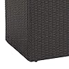 Brown natural wood appearance table top made of rust-resistant powder-coated steel with brown all-weather wicker and a rust-resistant powder-coated steel frame