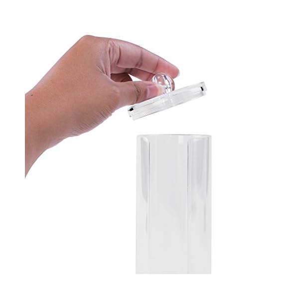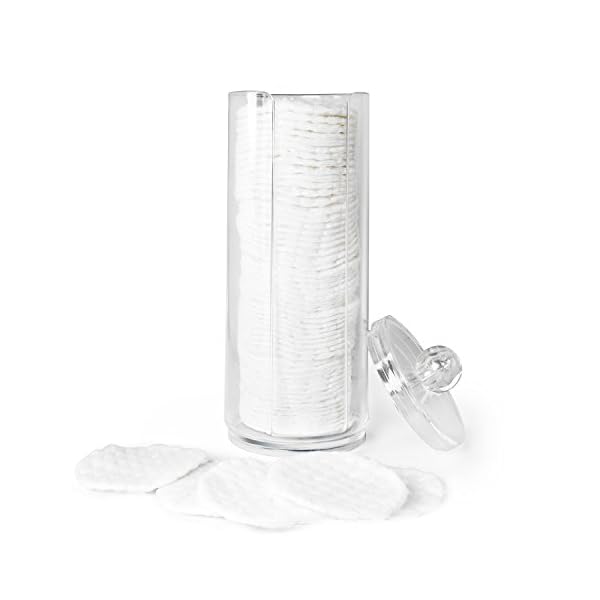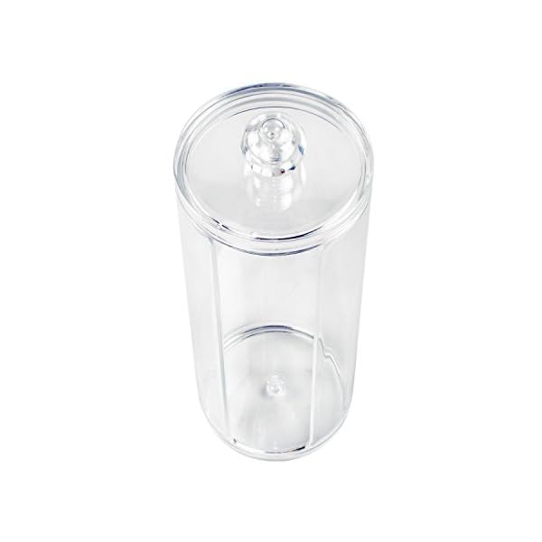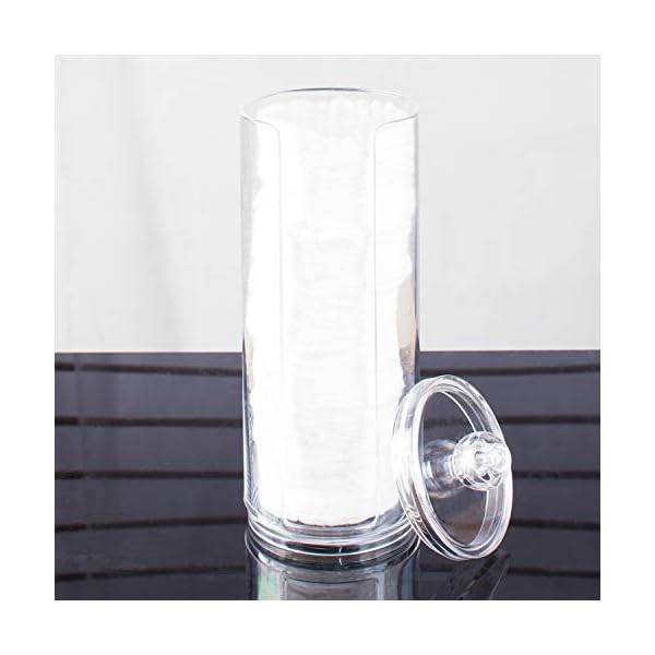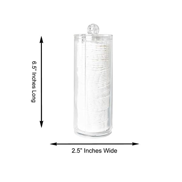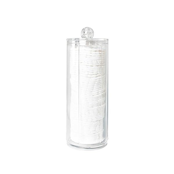 Simple and sleek stylish clear design matches any decor and provides a fashion forward trend for your daily morning beauty routine. A simple tube-shaped design provides the organization space you need to store all your cotton pads!