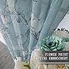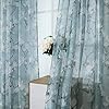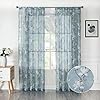Tollpiz Floral Blue Short Sheer Curtains Flower Print Vine Embroidery Bedroom Curtain Rod Pocket Voile Window Curtains…