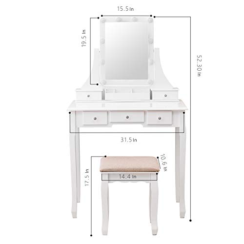 360-degree Rotation Rectangle Mirror: Simple and elegant design with 360°pivoting mirror, crystal knob and wooden legs.You can put this vanity desk in bedroom, bathroom, closet or hallway. As a birthday present or Christmas gift, your daughter and girlfriend will love it.
