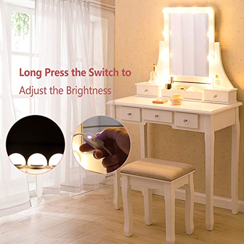 Two Lighting Modes: 10 LED mirror lights control can switch the two modes of the vanity mirror light-daylight and warm. Suitable for bedroom, bathroom and living room. You can easily switch the lighting mode between natural light, warm light and cold light through the touch button, or you can adjust the brightness through the long touch switch to meet different makeup needs