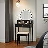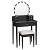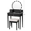 Surprise Your Love: With clean lines, a timeless black table surface, and a large mirror with light bulbs, this makeup table is an ideal gift for your sweetheart, who will certainly not hesitate to fill up their new dressing table