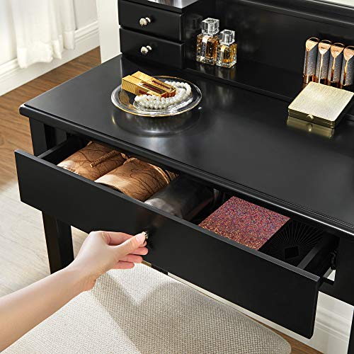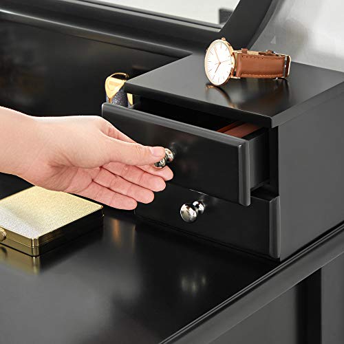Surprise Your Love: With clean lines, a timeless black table surface, and a large mirror with light bulbs, this makeup table is an ideal gift for your sweetheart, who will certainly not hesitate to fill up their new dressing table