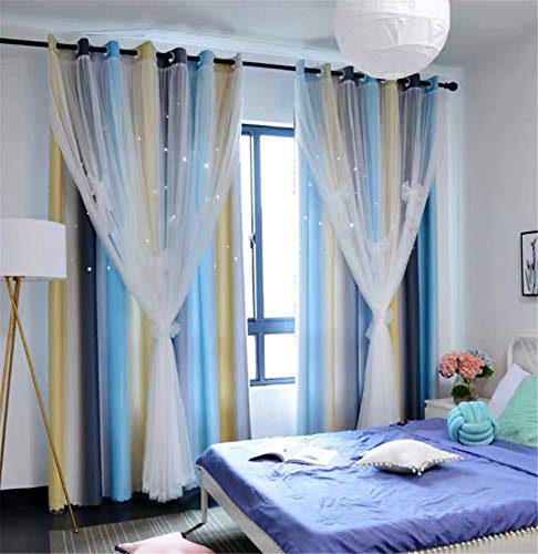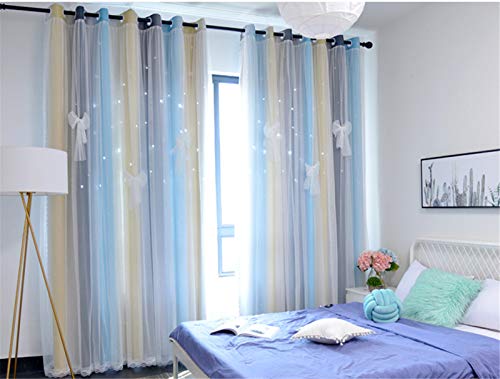 Yancorp Curtains for Girls Bedroom Kids Curtain Hollow-Out Star Window Drapes Curtain 63 inches Length Room Darkening…