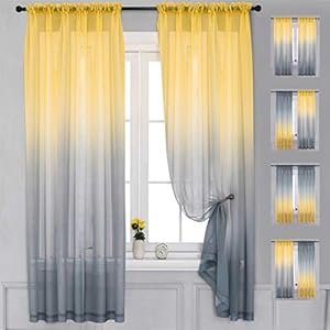 Yancorp 2 Panel Sets Bedroom Curtains 96 inch Length Sheer Curtain Linen Yellow Grey Gray Ombre Rod Pocket Drapes for…